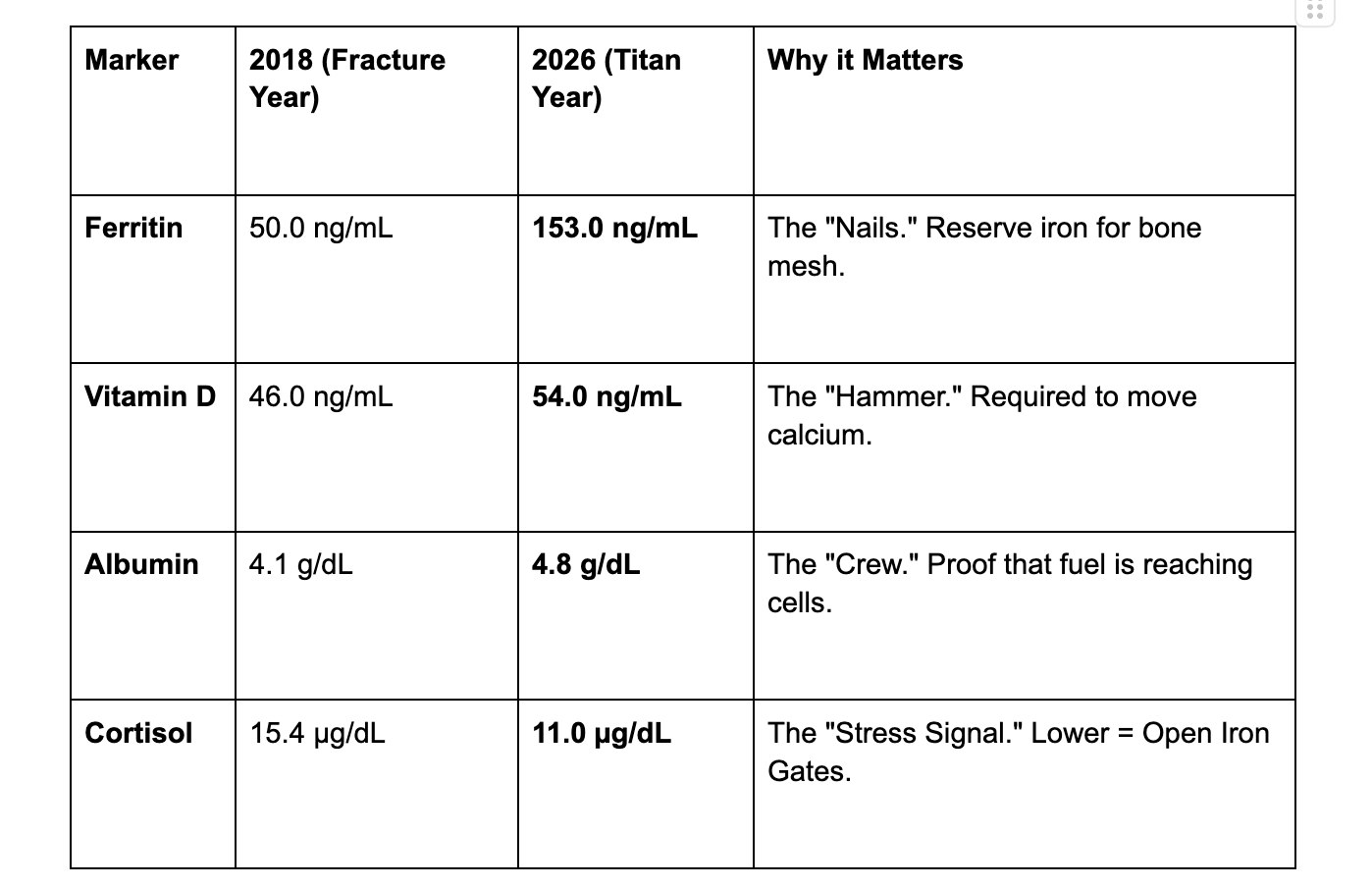 Most doctors will refuse to check Ferritin. If they say it's "not necessary," tell them: “As a high-mileage runner, my iron turnover is significantly higher. I am monitoring my Ferritin to ensure my bone remodeling has the necessary co-factors to prevent structural failure.” If they still refuse, own your data and order a private test. You are the architect of your own integration.